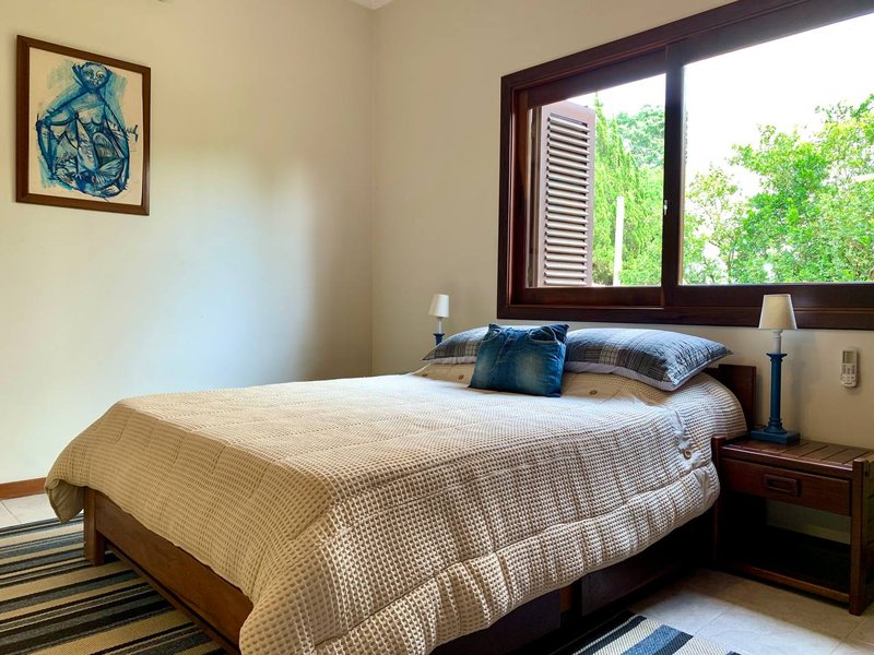 A casa tem ares toscano, com uma varanda deliciosa e um jardim perfeito.