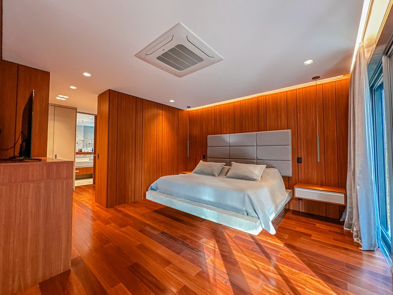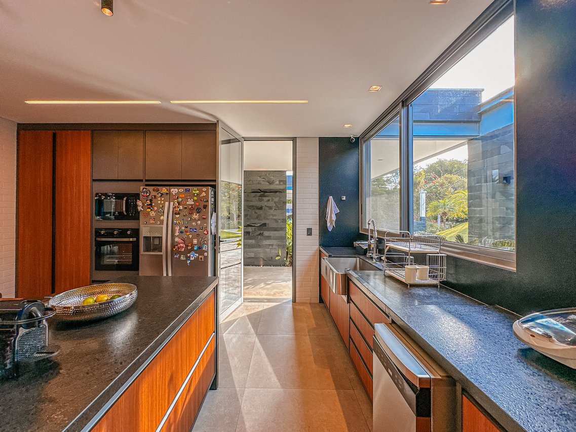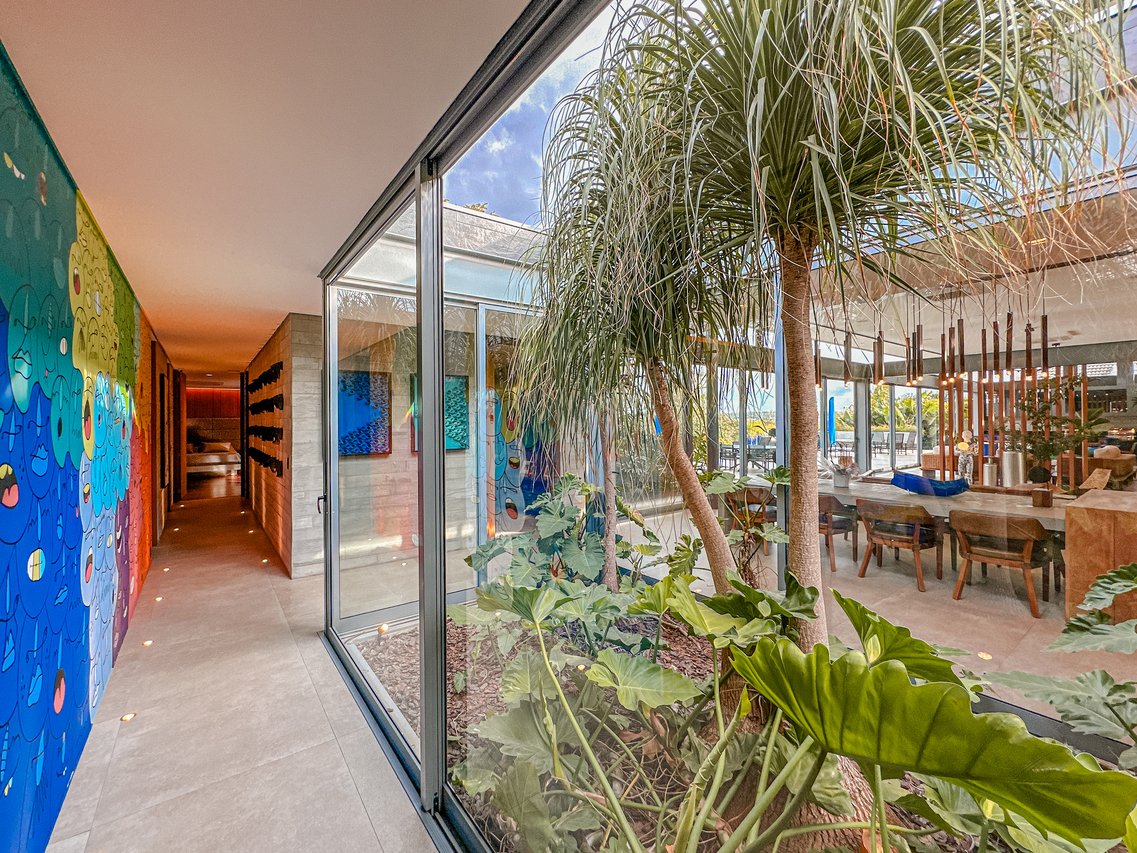 Esta sofisticada casa possui design contemporâneo, a residência é totalmente térrea e área social integrada. Mobiliada com peças exclusivas e móveis assinados. A casa conta com sistema de automação e paisagismo impecável